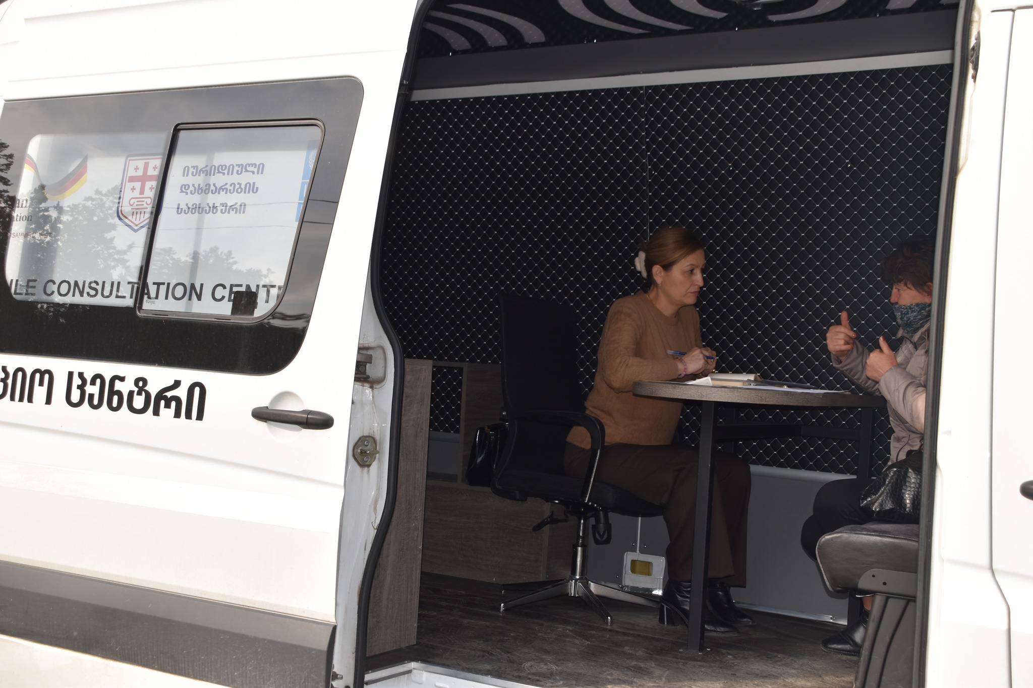 After the conference, consultant Nino Masurashvili used the mobile consulting centre to give each Ateni resident a private legal consultation on matters that were important and of interest to them.
